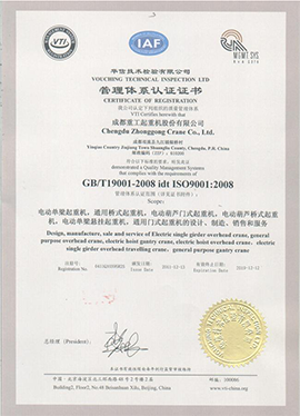 公司一貫奉行“誠信為本,質(zhì)量為上”的宗旨,制造的產(chǎn)品及施工質(zhì)量得到了顧客的好評。銷售數(shù)量近幾年大幅上升,銷售服務(wù)機構(gòu)輻射全國二十多個省、市、自治區(qū)。本公司主要從事“重工”牌各種單雙橋式、門式、懸掛式、抓斗式、電磁式、手拉式起重機,CD、MD型電動葫蘆系列機械設(shè)備的制造銷售,承攬各種非標(biāo)車設(shè)計、制造安裝、維修、供應(yīng)全套配件。